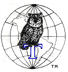 Our Logo: An Owl, perched on a capital letter "T", and superimposed on a globe showing North and South America.